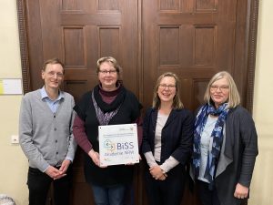 Die Plaketten-Übergabe passte in die Phase zum Ende des Kalenderjahres sowie zu der anstehenden Lehrerkonferenz, wenn es Zeit ist, danke zu sagen für das Engagement aller, und Zeit ist, um zurückzublicken und stolz auf das Erreichte zu sein: Seit 2014, dem Beginn der ersten BiSS-Phase und der engen Zusammenarbeit mit der Bergischen Universität Wuppertal, ist das Gymnasium Bayreuther Straße ein fester Partner im Netzwerk der BiSS-Akademie NRW.